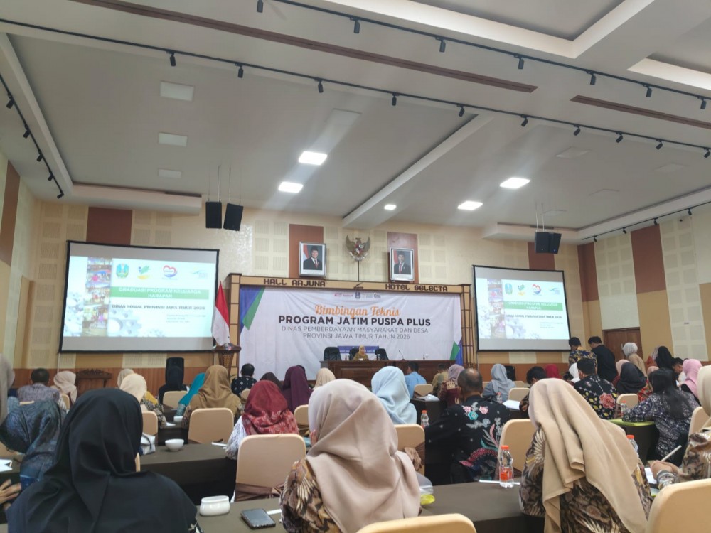 Batu – Pemerintah Provinsi Jawa Timur terus memperkuat upaya penanggulangan kemiskinan melalui Program Jatim Puspa Plus Tahun 2026. Pada hari kedua pelaksanaan Bimbingan Teknis (Bimtek), peserta mendapatkan pemahaman komprehensif mulai dari transformasi data kemiskinan, mekanisme graduasi PKH, hingga strategi pemberdayaan ekonomi perempuan berbasis jejaring.